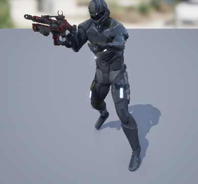 My last option was not perfect either, Fab offers paragon assets for free and on the surface seemed like the ideal pick. These assets are known for their high fidelity and they use a skeleton similar to the UE5 Mannequin skeleton. The glaring problem with this one was extremely related to the structure of how our game is built. You see, all the attack and shooting code/functionality lied within our rifle weapon class, not our player. The issue with this is paragon assets always come with a weapon in their mesh and work off the basis that your attack functionality is based in your player and not your weapon. The result was a floating weapon that followed the player no matter where I went, since the weapon is attached to the skeleton, seen below